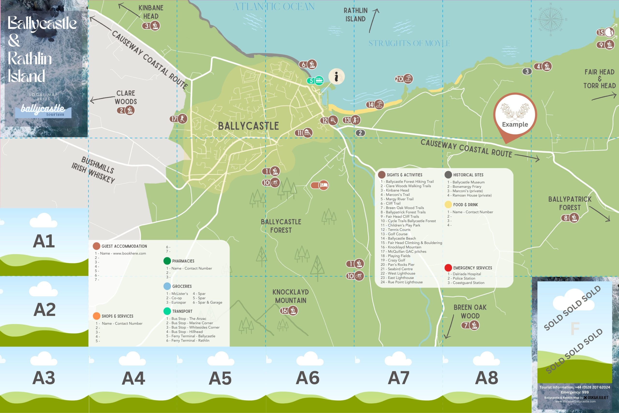 The inspiration for this project stemmed from a practical need. When friends planned a visit, I was surprised to find a lack of a comprehensive tourist map for Ballycastle or Rathlin. Other towns had theirs, but our area was overlooked. Thus, the idea emerged to create a guide not only for my friends use but to offer every visitor a curated glimpse into the distinctive offerings of our area, supporting local businesses in the process.